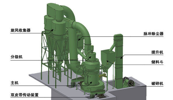 01/磨粉机为立体结构,占地面积小,从原材料的破碎、输送、制粉到成品的收集、存储、及包装,可自成一个独立完整的生产体系,系统性强。